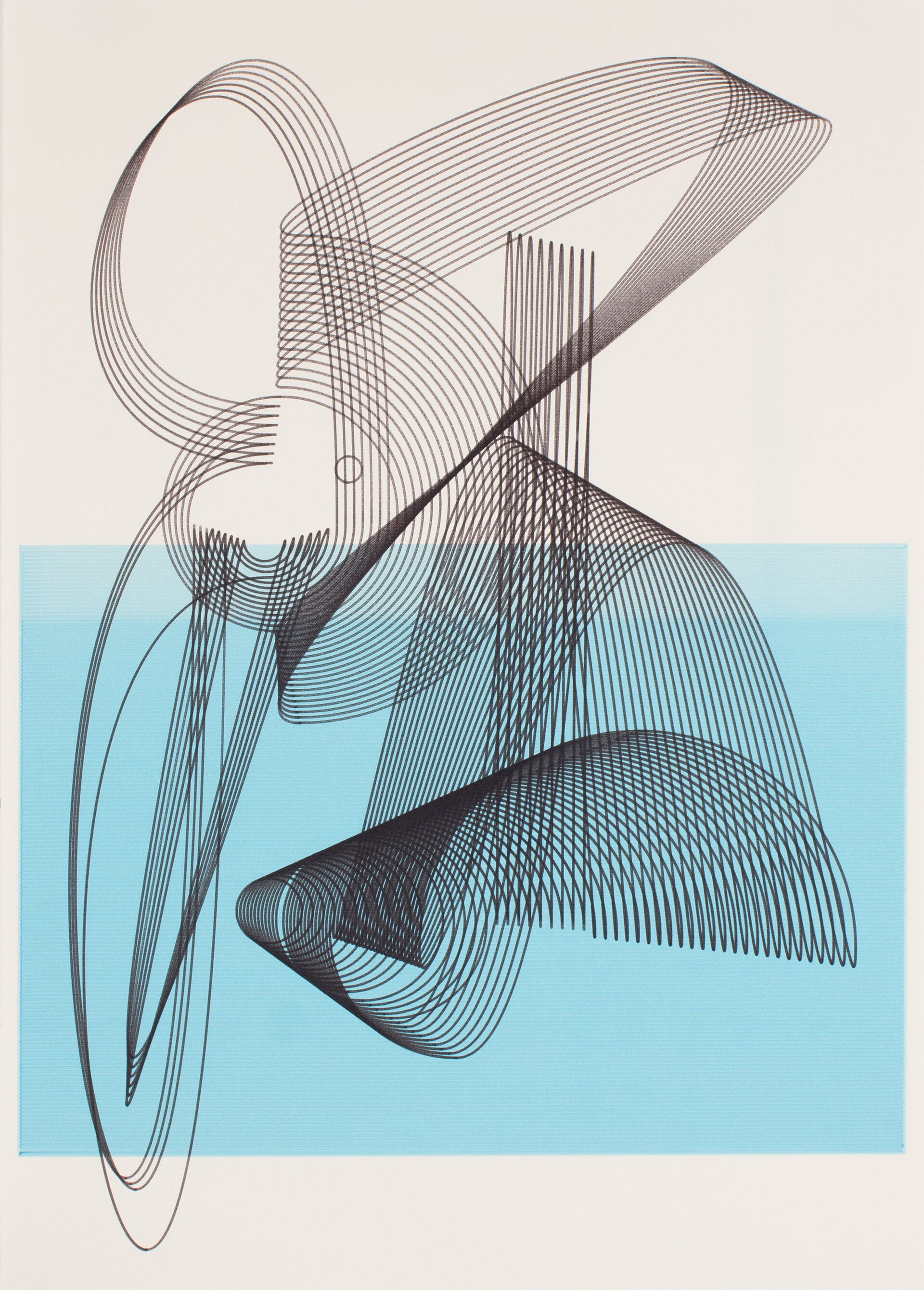 Malte van de Waters Arbeiten sind ein Bindeglied zwischen digitaler und analoger Kunst. Die bewegten Kompositionen entstehen am Computer und werden dann auf die Leinwand übertragen. Er beherrscht das Spiel mit Formen, Figuren, Linien und Schattierungen, durch die Werktitel stößt er spielerisch Geschichten an und lässt dabei der Imagination Raum.