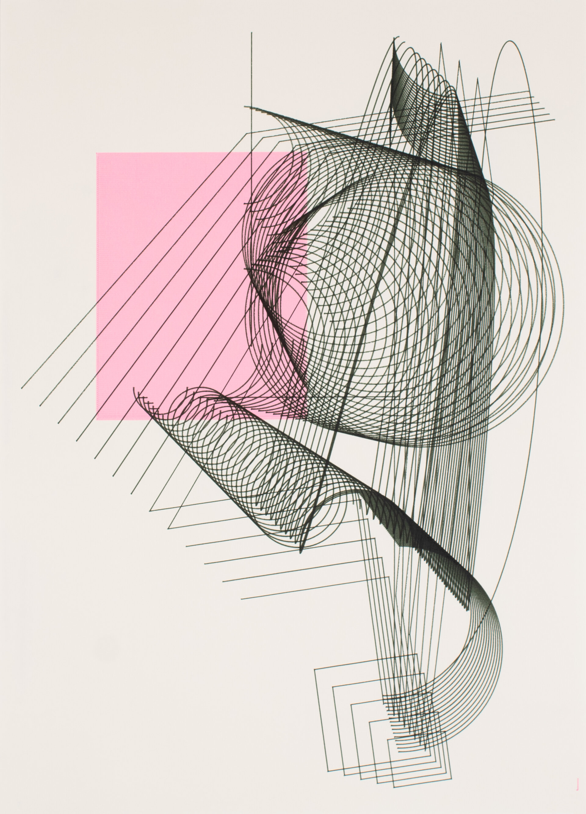 Malte van de Waters Arbeiten sind ein Bindeglied zwischen digitaler und analoger Kunst. Die bewegten Kompositionen entstehen am Computer und werden dann auf die Leinwand übertragen. Er beherrscht das Spiel mit Formen, Figuren, Linien und Schattierungen, durch die Werktitel stößt er spielerisch Geschichten an und lässt dabei der Imagination Raum.
