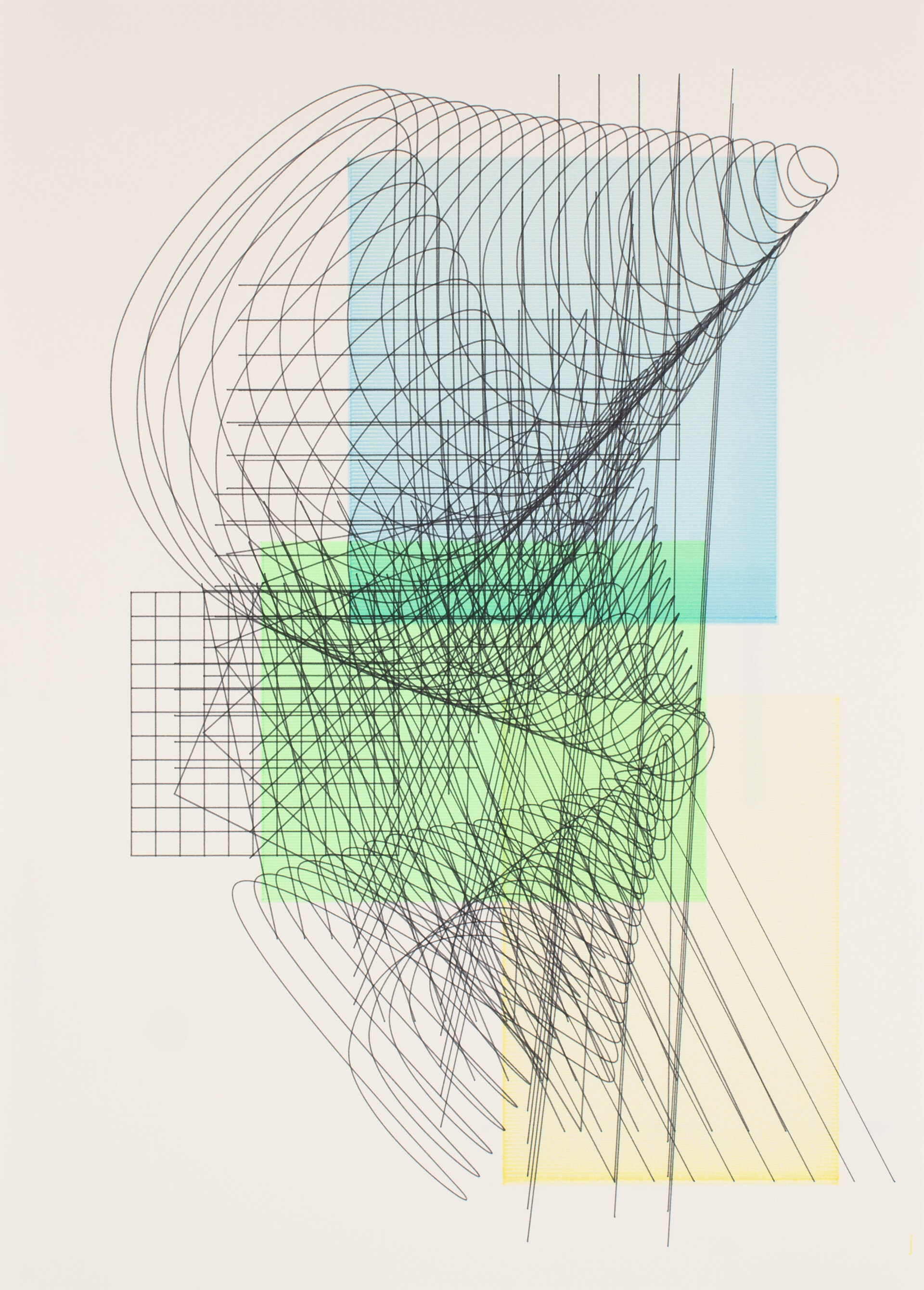 Malte van de Waters Arbeiten sind ein Bindeglied zwischen digitaler und analoger Kunst. Die bewegten Kompositionen entstehen am Computer und werden dann auf die Leinwand übertragen. Er beherrscht das Spiel mit Formen, Figuren, Linien und Schattierungen, durch die Werktitel stößt er spielerisch Geschichten an und lässt dabei der Imagination Raum.
