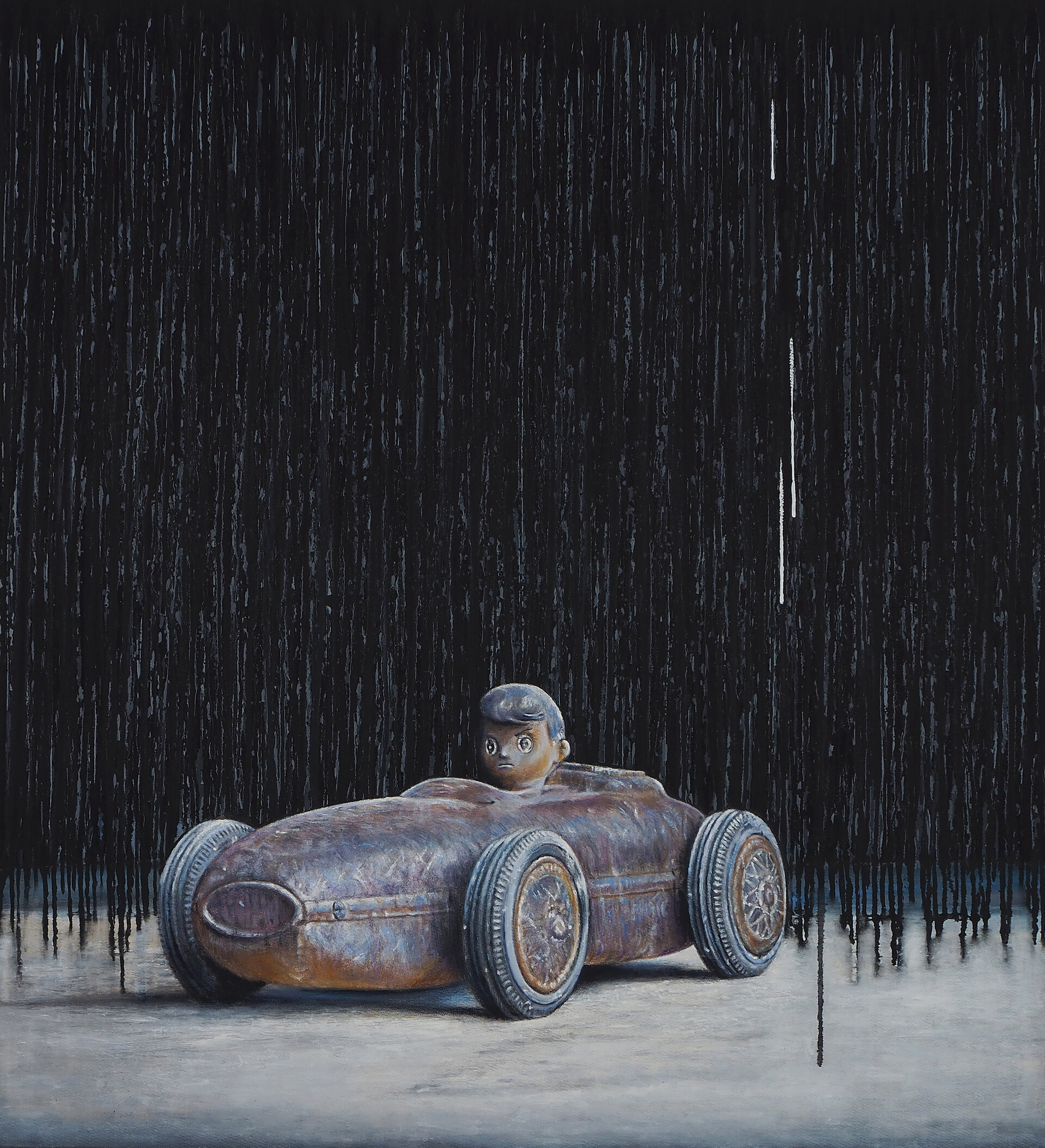 Die figurati­ven Bilder Constantin Schroeders sind eindrucksvolle, berührende Bilder mit Tiefgang, seine Bildprotagonisten faszinierende Charaktere, die uns nicht mehr loslassen. Die Gegenwart mit all ihren Facetten verinnerlichend, benutzt er eine sehr reduzierte Farbpalette. Meist in großem Format ausgeführt, fesseln die Szenen den Rezipienten durch ihre charakteristische Erzählweise. Schroeder greift tief in das Archiv der menschlichen Psyche. Seine Werke zeigen eine rätselhafte Ikonografie, junge Heroen geben zwischenmenschliche Rätsel auf. Der in Berlin lebende und arbeitende Künstler, der Theologie, Philologie und Kunstgeschichte studiert hat, beleuchtet in einer außergewöhnlichen, hyperrea­listischen Handschrift auch die Schattensei­ten des Lebens. Es sind kraftvolle Bilder, die uns mit ihren rätselhaften Bildinhalten fesseln. Manche Bildpartien lässt Schroeder weiß, diese ermöglichen dem Betrachter durch offene Assoziationen eine eigene Interpretation und Lesbarkeit des Bildes.