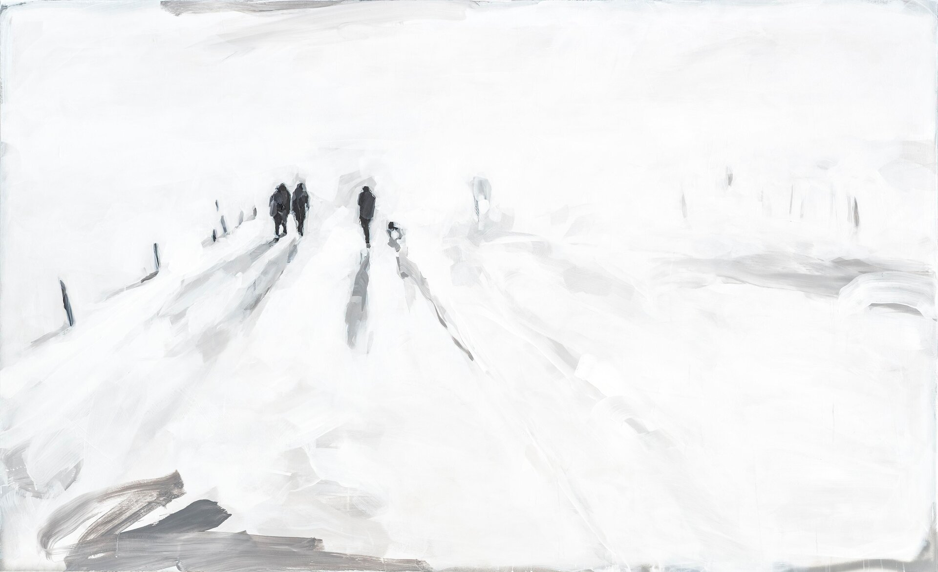 Wahrscheinlich macht die Farbe Weiß diese vermeintliche Ruhe so spürbar. Ich habe nie explizit nach Ruhe gesucht, allerdings arbeite ich tatsächlich gerne in einer Umgebung, in der ich nicht abgelenkt werde. Das Malen ist aber in meinem Fall nicht unbedingt monoton(!) – es ist hochkonzentriert, so richtig ruhig ist es nie.