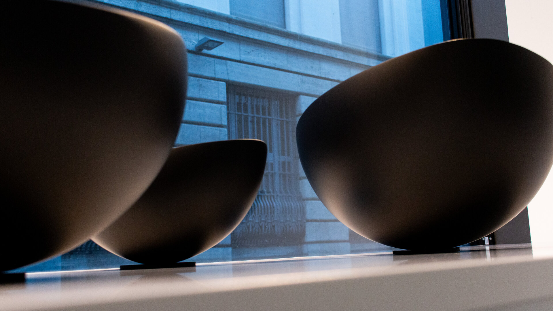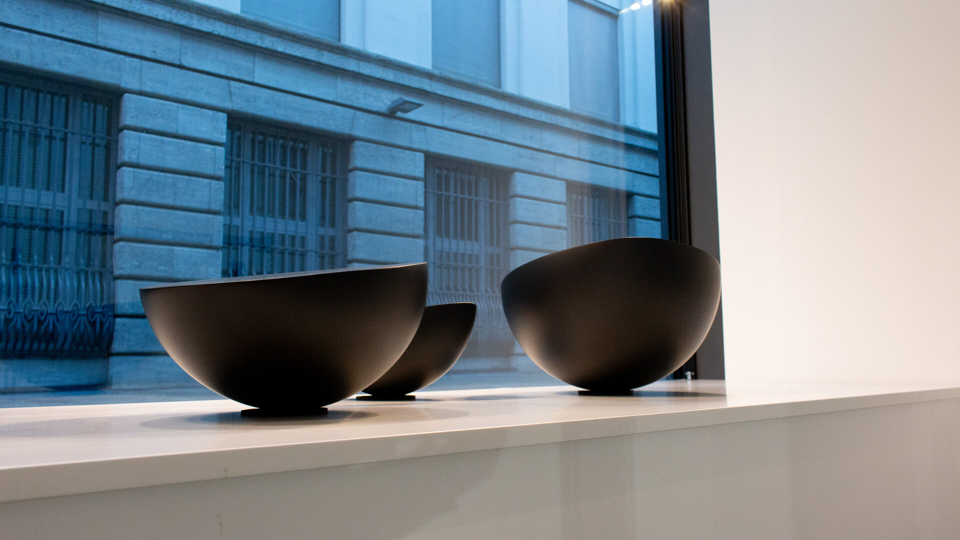 Broys architektonisch-minimalistische Modelle spielen mit konventionellen Vorstellungen von Raum und Zeit, deren Anfang und Ende im Ungewissen bleiben (Metamorphose, Anfang wie Ende, Kantig Schön).