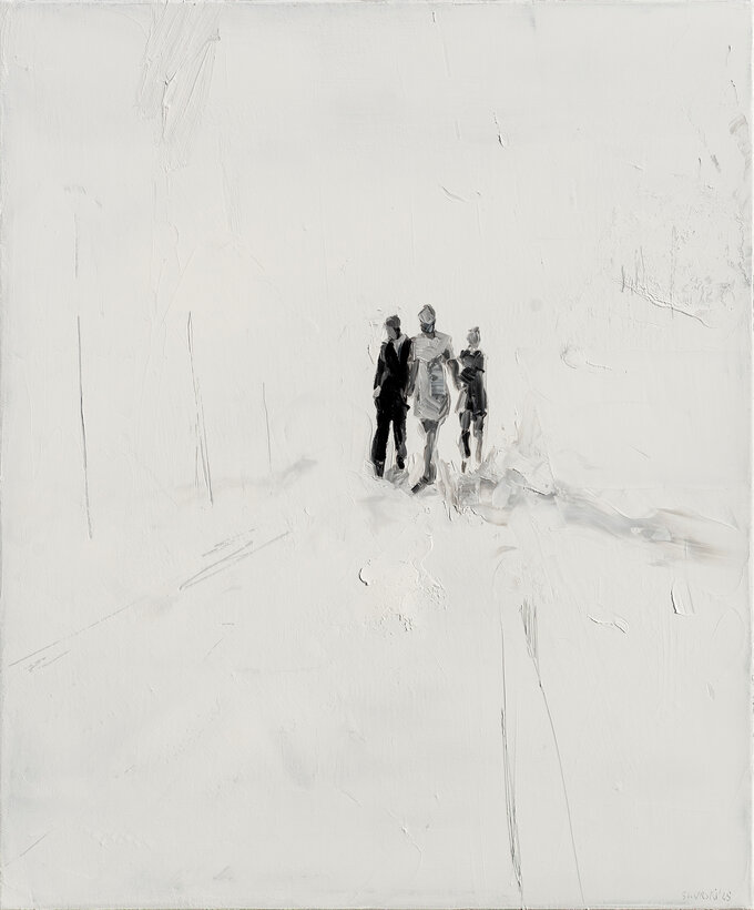 Wahrscheinlich macht die Farbe Weiß diese vermeintliche Ruhe so spürbar. Ich habe nie explizit nach Ruhe gesucht, allerdings arbeite ich tatsächlich gerne in einer Umgebung, in der ich nicht abgelenkt werde. Das Malen ist aber in meinem Fall nicht unbedingt monoton(!) – es ist hochkonzentriert, so richtig ruhig ist es nie.